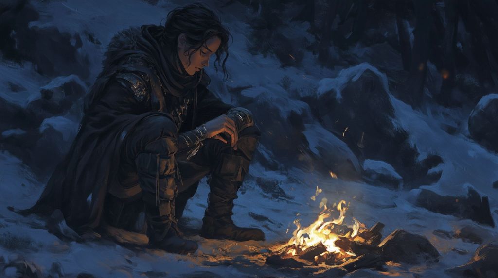 From his bedroll, Castian stirred slightly. “Talking to yourself again, Frost?” he murmured sleepily. “Or have your ghosts finally decided to answer back?”