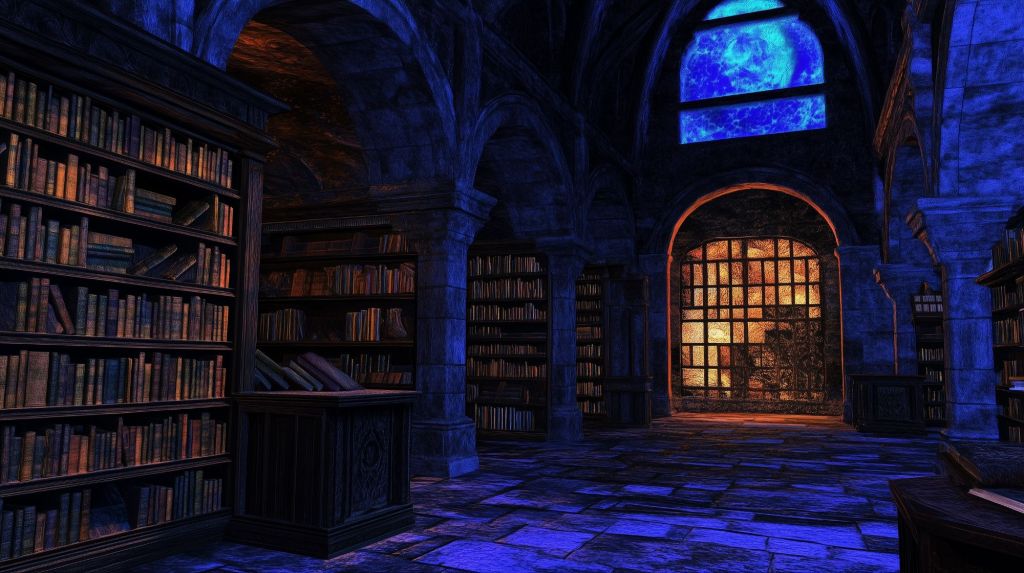 The last mortal departed as twilight painted the ancient library in shades of amber and indigo. Their footsteps—like all human sounds—faded quickly, absorbed by row upon row of leather-bound knowledge and parchment memories. The great vaulted ceiling, designed to capture and amplify scholarly whispers, settled into its night-song: the subtle creak of wooden shelves, the hushed flutter of pages stirred by drafts from unseen corridors, the gentle percussion of dust motes settling on forgotten tomes.
