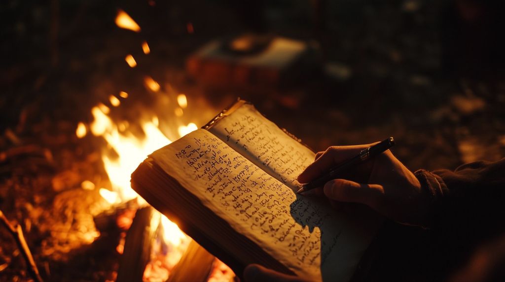 ather-bound journal, my quill moving by the amber glow that casts long shadows across our modest encampment. Beyond the circle of warmth, Korbak—my battle-scarred dire wolf—prowls the perimeter, his silver-flecked fur shimmering like moonlight on still water. Nearby, Thistle, a temperamental fairy dragon no larger than my forearm, curls atop my pack, her iridescent wings twitching as she dreams of whatever fairy dragons dream of. Probably setting something ablaze, knowing her.