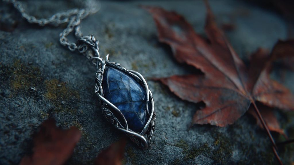 The autumn wind carried whispers of frost as Elindra traced her fingers along the curved edge of her pendant. Tarnished silver wrapped around a stone the color of midnight—not quite black, but a blue so deep it devoured light rather than reflected it. It hung against her skin, a familiar weight she’d carried since before memory itself had taken root.