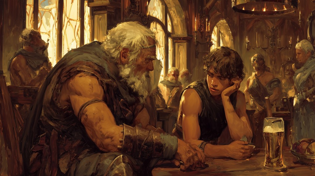 “Now, about your faith,” Gareth continued, his weathered hands steady around his mug. “I’m not going to preach at you about which gods to follow or how to worship—that’s between you and whatever powers you believe govern the world. But I will tell you this: a man needs something larger than himself to serve, something that gives meaning to the struggle. Without that anchor, you’ll drift when the storms come, and storms always come.”