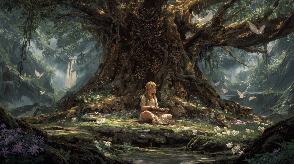 “Strategies for health and well-being,” Verdania repeated, her voice emerging not from any single point but from the symphony of rustling leaves, creaking branches, and the subtle whisper of sap moving through channels as vast as rivers. “Child of brief seasons, you ask how I maintain vitality across eons when your kind measures wellness in heartbeats and meals.”