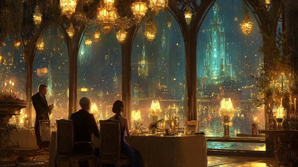 He noticed, for instance, that Elara had been admiring the view of the Crystal Spires from our window-side table, and without being asked, he adjusted the enchanted curtains to optimize the prismatic light patterns that painted our table in subtle rainbows as the evening progressed. When I mentioned my fondness for the wines of the Southern Provinces, he didn’t simply recommend a bottle but appeared moments later with small tastes of three different vintages, explaining the subtle differences in terroir and harvest conditions that affected their character.