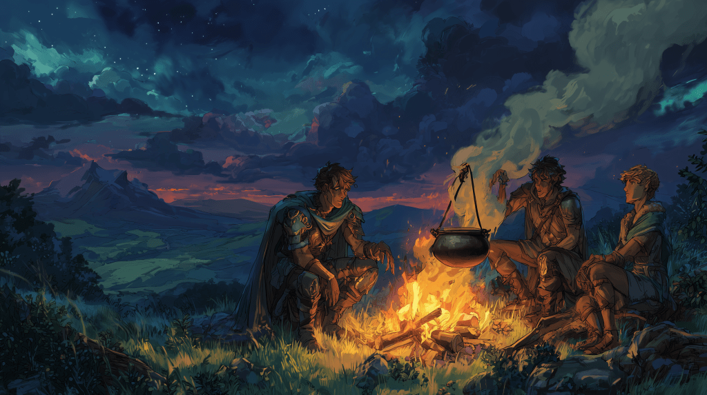 “I’ve got it under control,” Castor replied, perhaps more sharply than he’d intended. The cooking pot suspended over the flames showed encouraging signs of progress—steam rising from the carefully diced vegetables he’d spent an hour preparing, the aroma of herbs and spices beginning to meld into something that actually smelled like food rather than mere ingredients.